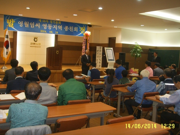 2014. 6. 14 강릉지역종친회(회장:명섭)가 강릉농협하나로 식당 4층
